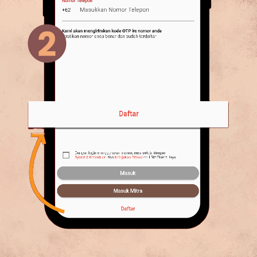 Daftar dan buat akun Anda dengan mengisi nama lengkap dan nomor telepon.