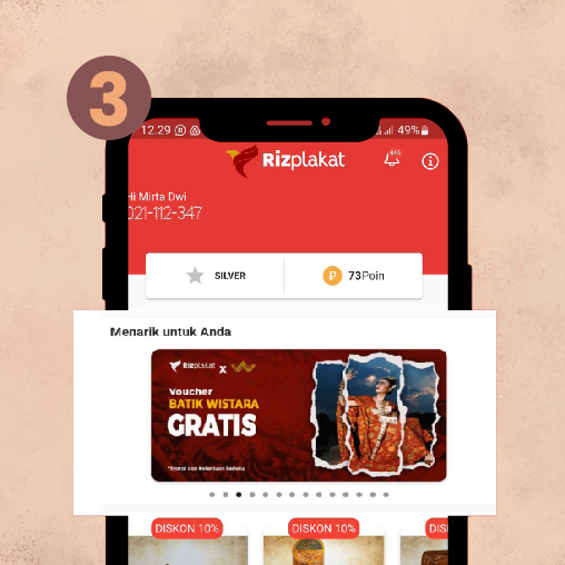 Cari dan pilih promo yang Anda butuhkan dengan menggeser slide banner pada halaman awal aplikasi. Kemudian klik promo.